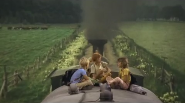 A clip from the film ‘Pa Rymmen’ (I’m not sure what the movie is called in English, but it means to run away from home). Pippi sings about all the things she loves about summer on top of the train.